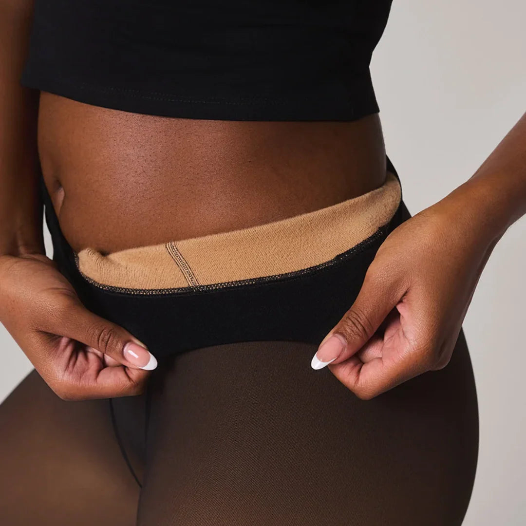 These tights are great for layering and even though they are thin it does keep warm! As it gets colder I like to wear these under my dress. The fabric inside is really soft and cozy. It doesn't feel like it's pinching you it just slightly hugs your skin. If it's worn properly you shouldn't feel it on at all because the fabric is stretchy. I would definitely buy more.